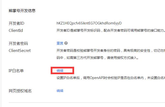 4、設(shè)置IP白名單,點(diǎn)擊編輯,這里設(shè)置的ip白名單是熊掌號綁定網(wǎng)站的ip地址,如圖: